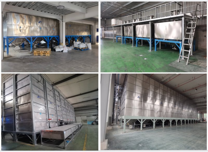 能不能實(shí)現(xiàn)智能供料的同時(shí)兼顧高效管理原料的倉(cāng)儲(chǔ)?如果客戶工廠沒有足夠的廠房空間怎么辦?東莞智力針對(duì)這些問題進(jìn)行了一系列的技術(shù)攻堅(jiān),通過智能設(shè)備一次性將材料直接裝入材料倉(cāng),省去中間搬運(yùn)、擺放等環(huán)節(jié),并設(shè)計(jì)出專門用于存儲(chǔ)吹膜材料的立體倉(cāng)庫(kù)。該倉(cāng)庫(kù)一種材料一個(gè)倉(cāng),裝料、用料全部實(shí)現(xiàn)了人工替代,一兩百平方的地方儲(chǔ)存幾百噸上千噸的原料。倉(cāng)庫(kù)高度可根據(jù)客戶用料多少、廠房規(guī)劃來(lái)定制。對(duì)于沒有前期規(guī)劃,或者工廠內(nèi)部空間不夠大的情況,可將廠房外面的綠化區(qū)域進(jìn)行開發(fā)利用,可提升3.5-5倍的倉(cāng)庫(kù)利用率,從成本核算的角度來(lái)說,一年半至兩年即可收回購(gòu)買設(shè)備的成本。